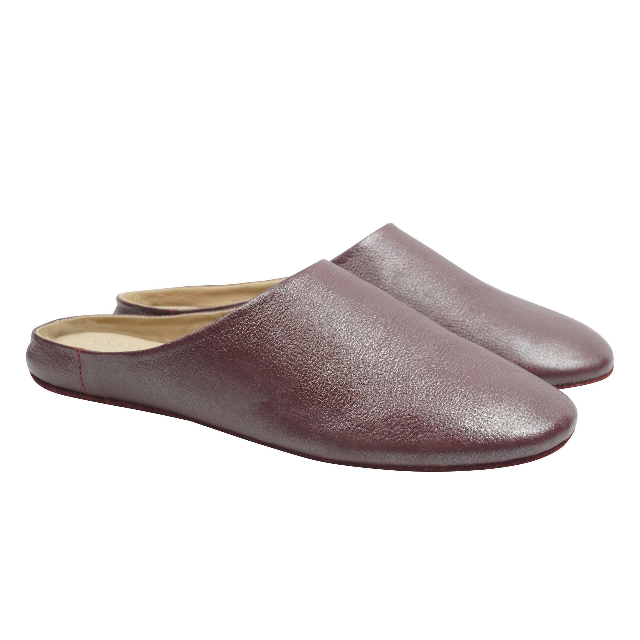 Crafted from luxurious burgundy calf leather, these slippers exude depth and charm for refined indoor wear. Their supple build and bold tone make them versatile for both relaxed lounging and polished indoor gatherings.